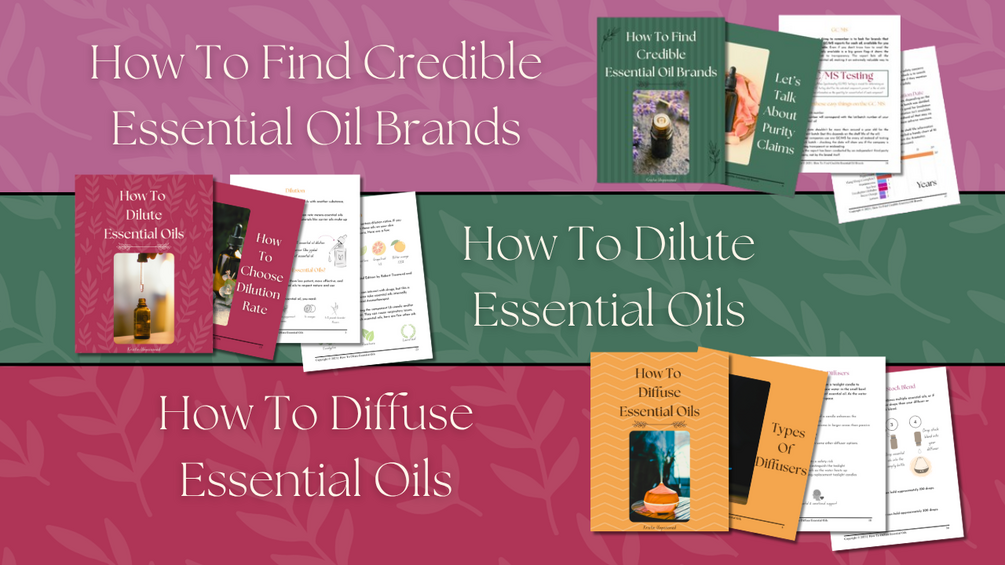 3 detailed, full color PDF guides teaching you how to find credible essential oil brands, how to dilute essential oils, and how to diffuse essential oils.